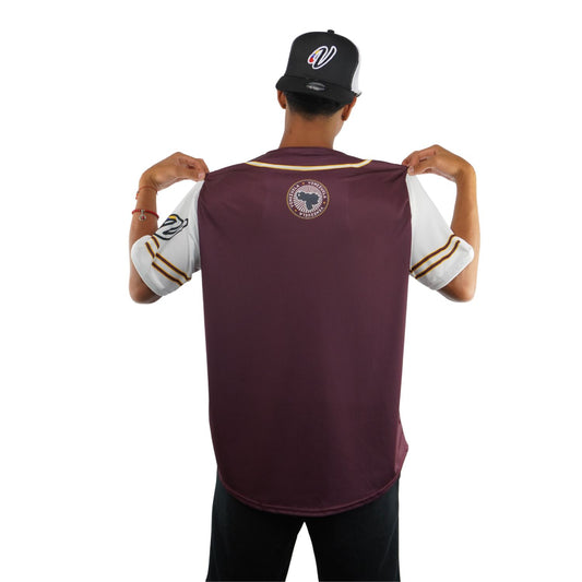 Camiseta Triple Play con botones V Tricolor Venezuela Black
