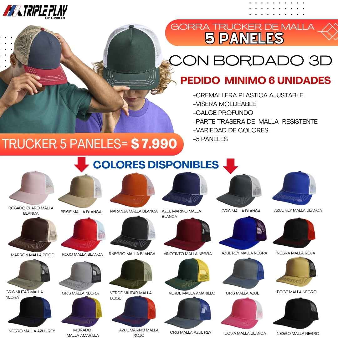 Gorra trucker de malla 6 paneles