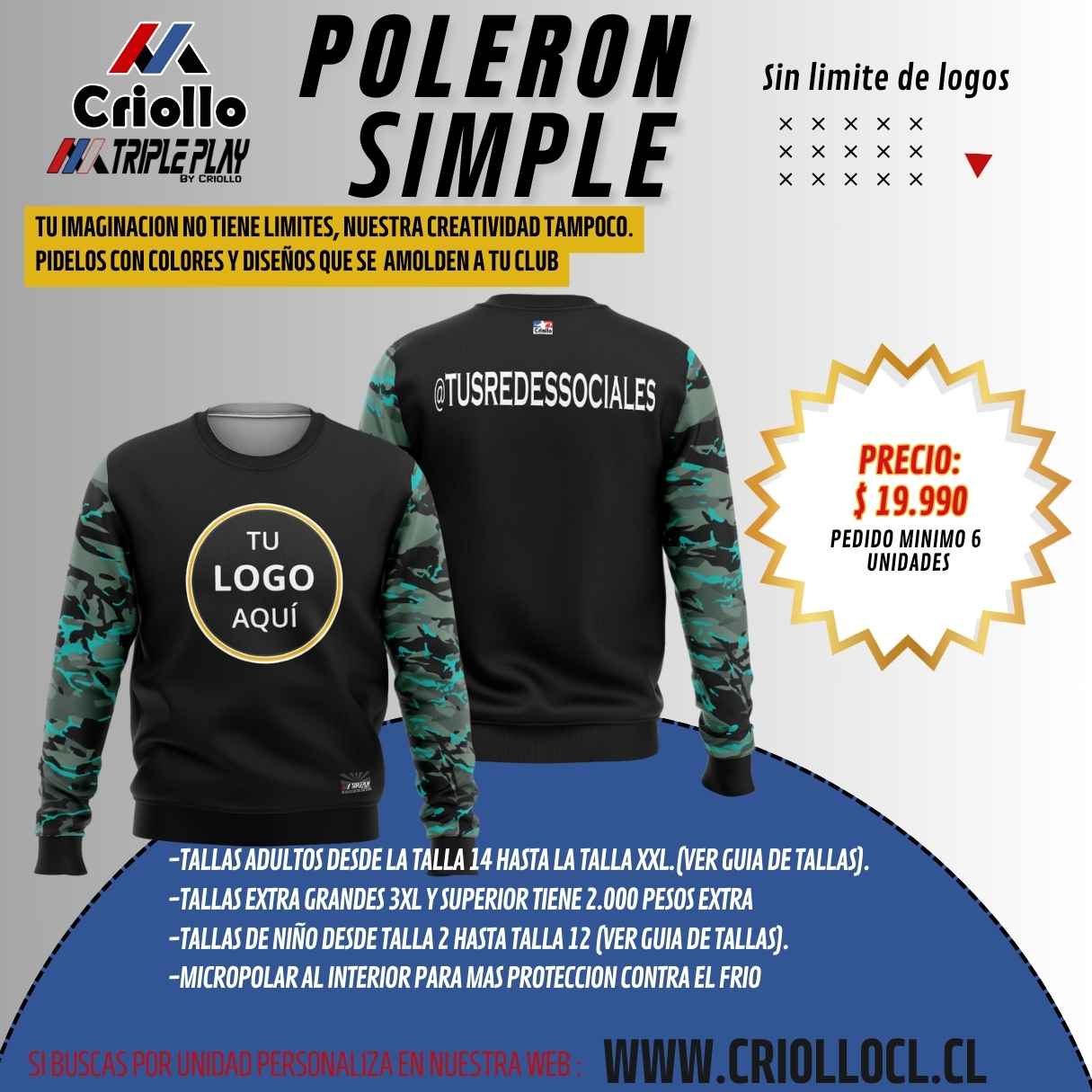 Poleron sublimado, sin limite de logos.